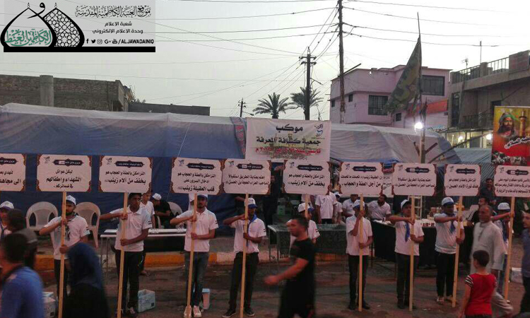متطوعون يبذلون جهودا مضنية للتخفيف من معاناة الوافدين مشياً على الأقدام إلى مينة الكاظمية المقدسة، حيث ساهمت مؤسسة المعرفة للثقافة مع المؤسسات التطوعية المشاركة بذكرى استشهاد الإمام موسى الكاظم "عليه السلام" ، في التقديم الخدمات المتنوعة للزائرين الكرام، منها نشر الوعي الثقافي والديني والاجتماعي بين الزائرين، علماً أن هذه هذه الكوكبة المشاركة هم خريجوا الدورات التطويرية والمخيمات الكشفية التي تنفذها المؤسسة بمباركة من المرجعية الدينية العُليا في النجف الأشرف المتمثلة بآية الله العظمى سماحةعلي الحسيني السيستاني "دام ظله الوارف".