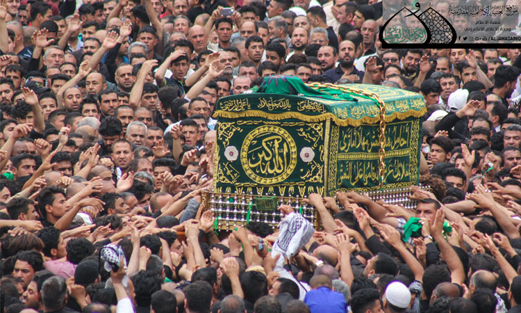مرة أخرى يجدد الموالون والمحبون عهدهم وبيعتهم للإمام موسى بن جعفر الكاظم "عليه السلام" وهم يرفعون شعارات الحب المتجذر عبر أعماق السنين وعمق الولاء الحقيقي الذي يسري بعروقهم، الذين خطوا بأقدامهم ومسيرتهم أروع صور التضحية والعقيدة ليقفوا على أعتاب الوفاء ملبين النداء لمولاهم المظلوم المسموم باب الحوائج "عليه السلام"، وبهذا انطلقت الحشود المؤمنة الموالية نحو مرقد الإمام موسى بن جعفر الكاظم "عليه السلام" في تشيع مهيب لنعشه الرمزي في ذكرى استشهاده في الخامس والعشرين من شهر رجب الأصب، محفوفاً بالحشود الهائلة عبر مسيرة إيمانية متجهة صوب الصحن الكاظمي الشريف، حيث استقبل بالتكبير والخشوع والهيبة وذرف الدموع من قبل المعزين في الرحاب الطاهرة للإمامين الجوادين "عليهما السلام"، وحضر هذه المراسم الأليمة الأمين العام للعتبة الكاظمية المقدسة أ. د. جمال عبد الرسول الدباغ وأعضاء مجلس الإدارة، وخدام الإمامين الجوادين، وشخصيات اجتماعية، وبمشاركة الحشود المليونية الوافدة إلى مرقد الإمامين الكاظمين"عليهما السلام" والتي استمر توافدها على مدى أيام عدّة من مختلف أنحاء العراق. وشهدت مراسم التشييع قراءة قصة استشهاد وصي الأبرار موسى الكاظم "عليه السلام" من قبل فضيلة الشيخ أحمد الربيعي ثم تلاه الرادود الحسيني عمار الكناني بقراءة المراثي ومجلس للعزاء.