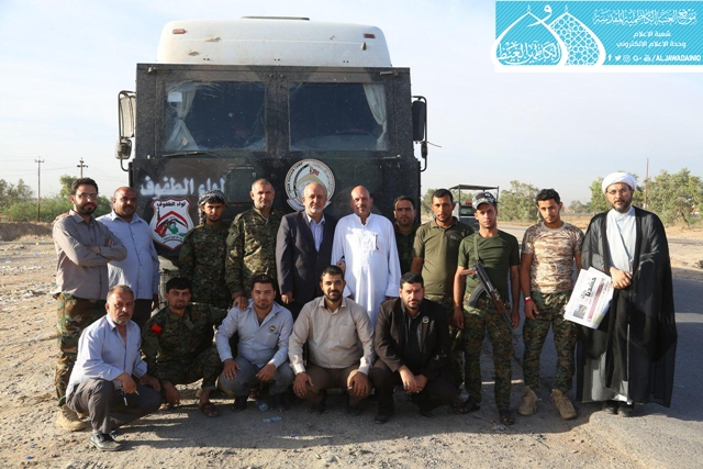 زار وفد العتبة الكاظمية المقدسة تشكيلات لواء الطفوف التابعة للعتبة الحسينية المقدسة في قواطع العمليات العسكرية في الجانب الأيمن بمحافظة نينوى، وتم اللقاء بأمراء التشكيلات من مجاهدي الحشد الشعبي واطلعوا خلاله على سير عمليات التحرير والتقدم الكبير الذي يحققه المجاهدون بالتنسيق العالي مع القوات الأمنية في دحر العصابات الإرهابية والتكفيرية في تلك القصبات والمناطق. كما تفقد الوفد وضع المجاهدين المرابطين في سوح القتال، وإيصال الدعم اللوجستي لهم مشيداً بالجهود المباركة والمواقف النبيلة والشجاعة التي سطروا فيها أروع صور التضحية والفداء في تلبيتهم للنداء المقدس، في الوقت ذاته أكدوا هؤلاء المؤمنين على حرصهم الدائم بالالتزام بفتوى المرجعية العليا المتمثلة بسماحة آية الله العظمى السيد علي الحسيني السيستاني "دام ظله الوارف" وتوصياته السديدة وهم يرفلون اليوم بالهمم العالية .