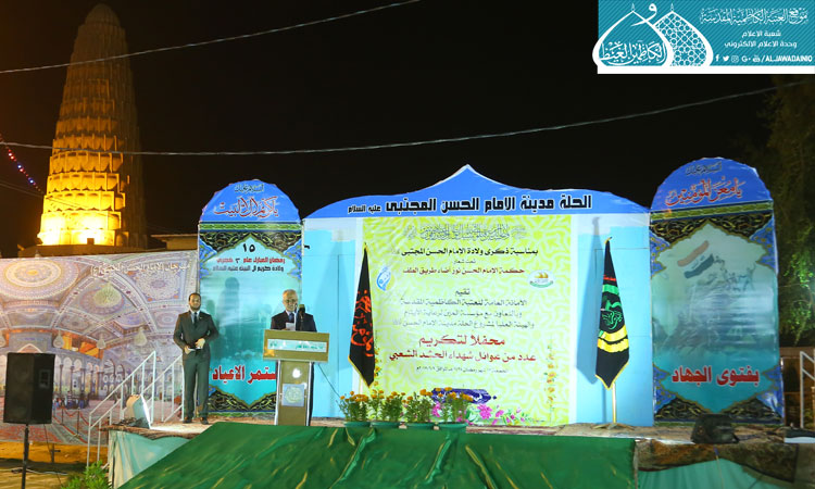 بمناسبة ذكرى ولادة سبط النبوة، وثاني الأئمة الهداة، كريم أهل البيت الإمام الحسن بن علي بن أبي طالب "عليه السلام"، أقامت الأمانة العامة للعتبة الكاظمية المقدسة وبالتعاون مع كل من الهيئة العليا لمشروع الحلة مدينة الإمام الحسن "عليه السلام" ومؤسسة العين للرعاية الاجتماعية برنامجاً خاصاً لتكريم عوائل شهداء الحشد الشعبي مساء الجمعة 13 شهر رمضان 1438هـ في مقام ردّ الشمس بمدينة الحلة الفيحاء، تحت شعار: (حكمة الإمام الحسن عليه السلام نور أضاء طريق الطف)، وذلك إكراماً للشهداء وتخليداً لأرواحهم الطاهرة وتعظيماً لجليل تضحياتهم، بحضور الأمين العام للعتبة الكاظمية المقدسة الأستاذ الدكتور جمال عبد الرسول الدباغ وخدّام الإمامين الجوادين عليهما السلام ونخبة من الشخصيات الدينية والاجتماعية في مدينة الحلة، استهل الحفل بتلاوة مباركة من الذكر الحكيم شنّف بها أسماع الحاضرين الحاج همام عدنان، أعقبها مراسم رفع راية الإمامين الجوادين "عليهما السلام" في سارية المقام الشريف، بعدها ألقى الأمين العام للعتبة الكاظمية المقدسة كلمة بهذه المناسبة، ومما ورد فيها: ( جئنا من رحاب الإمامين الجوادين "عليهما السلام"، وانقل لكم سلام خدام العتبة المقدسة ودعاءهم، الذين يحرصون على أن يكونوا معكم في كلّ سنة في هذا الشهر الكريم لإحياء مهرجان كريم أهل البيت الإمام الحسن المجتبى "عليه السلام"، ويُعد هذا المهرجان أحد مظاهر التمسك بأهل بيت النبوة "عليهم السلام"، وتحقيقاً لما أراده النبي (صلّى الله عليه وآله وسلّم) من المودة في القربى كما ورد في القرآن الكريم. ومن المؤكد أن مثل هذه المناسبات تدعونا إلى الاطلاع على سِيرهم العطرة وما ورد عنهم لكي نقتدي بهم في أقوالهم وأفعالهم. وأضاف: ( ان ما نقدّمه اليوم لعوائل شهداء الحشد الشعبي ما هو إلا شيء رمزي بعدما شرّفهم الله سبحانه وتعالى بهذه المنزلة والمكانة العظيمة التي ترفع شأنهم وأسرهم وعشائرهم وبلدهم في الدنيا، وما عند الله خير وأبقى في الآخرة. ننحني إجلالاً وإكبارا لهم، ولكل من لبّى نداء المرجعية الدينية العليا ويتصدى للدفاع عن الوطن والمقدسات، اللهم ارحم من وفد عليك شهيداً وتولّ عائلته بلطفك، وشافِ جرحانا، وانصر الأبطال الرابضين في جبهات القتال نصراً عزيزا، وافتح لهم فتحاً مبينا، اللهم اقترب عيد الفطر فاجعله عيدين بنصرهم المؤزر..)، تلاها كلمة ترحيبية من قبل الهيئة العليا لمشروع الحلة مدينة الإمام الحسن "عليه السلام"، بعدها ألقى فضيلة الشيخ قاسم الخفاجي محاضرة بعنوان: ( إشارات من حياة إمامنا الحسن "عليه السلام") استعرض خلالها السمات المجيدة والمناقب والفضائل والسجايا التي خصّها الله عزّ وجل للإمام الحسن "عليه السلام"، وما تعرّضَ له سبطُ الرسول "صلّى الله عليه وآله" وقُرّة عينه من الجورِ والظلم والقهرِ من قبل أعداء الإسلام. كما شهد الحفل مشاركة الشاعر الأستاذ رياض عبد الغني الكاظمي بقصيدة عنوانها (رسالة من شهيد) مطلعها: أفقتُ على ألقٍ أوحدِ مع الفجرِ كنتُ على موعدِ تَعجلتهُ وهو في غيبه رهين المقادير لم يولدِ وكانت هناك مشاركة لفرقة إنشاد العتبة المقدسة حيث صدحت حناجرهم بقصيدة عنوانها (حشدنا خذ سلام الخدم) التي افتخرت بشجاعة المقاتلين وتضحيات الشهداء الأبطال الذين سقت دماءهم أرض العراق، واختتم الحفل بتوزيع الهدايا النقدية والعينية من بركات الإمامين الهمامين موسى والجواد "عليهما السلام" على خمسين من العوائل المجاهدة التي ضحّت بأبنائها وفلذات أكبادها. ويأتي هذا العمل المبارك ضمن سلسلة التكريم المتواصلة في المحافظات المختلفة من قبل خدم العتبة المقدسة منذ صدور فتوى المرجعية المباركة حتى يومنا هذا، والتشرف بخدمة عوائل الشهداء والالتقاء بهم .