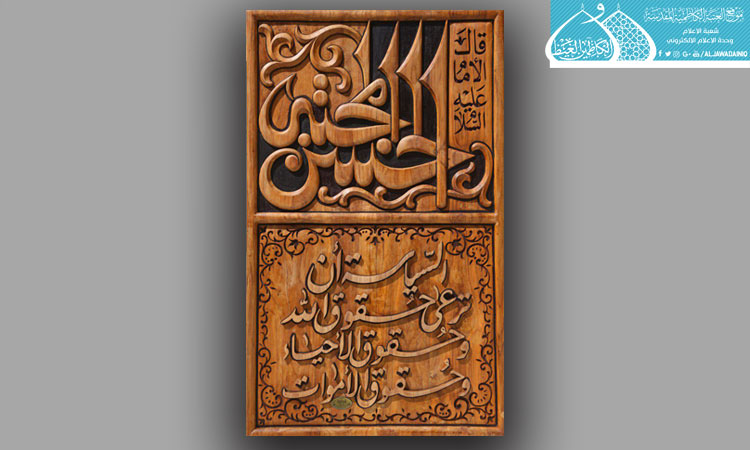 بمناسبة ذكرى ولادة سيد شباب أهل الجنة الإمام الحسن "عليه السلام"، قدمت وحدة النقش والزخرفة في العتبة الكاظمية المقدسة عملاً يدوياً جديداً تجسد بلوحة فنية رائعة لتضاف إلى سجل إبدعاتها الثقافية، حملت في طياتها مواعظ وحكم ودروس وعبر، وللتعرف على تفاصليها تحدث لموقع العتبة المقدسة الإلكتروني مسؤول وحدة النقش والزخرفة الأستاذ إبراهيم النقاش قائلاً: بمناسبة ولادة الإمام الحسن المجتبى استطاعت ملاكات الوحدة النقش والزخرفة أن تقدم عملاً جديداً من خشب باب المراد القديمة، حيث نقش عليه أسم الإمام الحسن "عليه السلام" بالخط العربي وما يسمى بـ( التجريدي) وأختيار أحد أحاديثه الشريفة "عليه السلام" حين قال: ( السياسة: ترعى حقوق الله، وحقوق الأحياء، وحقوق الأموات)، إذ وقع اختيارنا لهذه العبارات لما تحمله من رسالة إنسانية وأخلاقية للمجتمع الإسلامي، عندما أخذت السياسة حيز كبير من حياة البشرية جمعاء، فهنا يجب أن تكون مداعاة لحقوق الله "عزّ وجل" وعدم التجاوز على حقوق الاخرين، وأن يقوم الإنسان بواجبه تجاه إخوانه، ولا يتأخّرعن خدمة بلده ودينه وأمته..