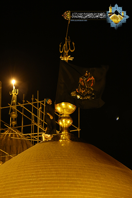 استبدال رايتي الامامين الجوادين(ع) بمناسبة ذكرى استشهاد أمير المؤمنين علي بن ابي طالب -ع