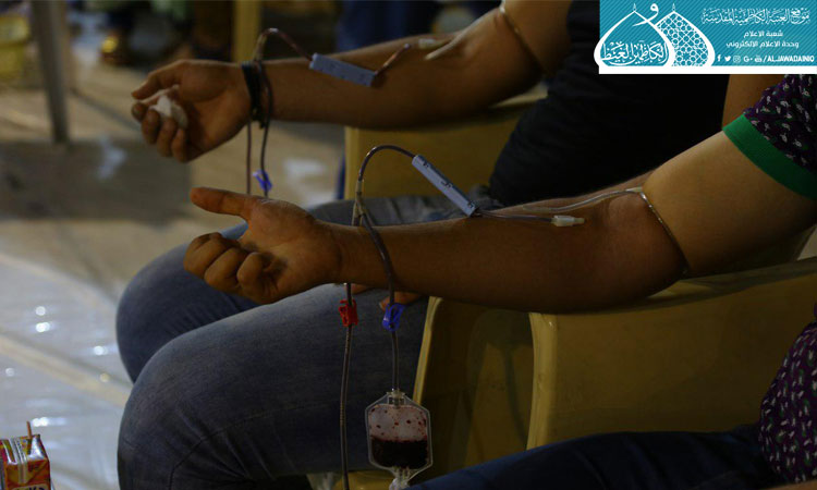 قال تعالى في محكم كتابه المبين في الآية (32) من سورة المائدة: "وَمَنْ أَحْيَاهَا فَكَأَنَّمَا أَحْيَا النَّاسَ جَمِيعًا"، وتزامناً مع أفراح شعبنا بمناسبة عيد الفطر المبارك وانتصارات قواتنا الأمنية والحشد الشعبي الأبطال في تحرير الجانب الأيمن من محافظة نينوى نظّمت الأمانة العامة للعتبة الكاظمية المقدسة حملة للتبرع بالدم في رحاب الصحن الكاظمي الشريف بالتعاون والتنسيق مع مصرف الدم الوطني العراقي، وجاءت هذه المبادرة الإنسانية انطلاقاً من الحس الإيماني والشعور بالمسؤولية التي تسهم وبشكل فاعل في توفير كميات وأنواع مختلفة من أصناف الدم ومشتقاته للجرحى والمصابين الراقدين في المستشفيات الميدانية والذين هم بأمسّ الحاجة إليه، كما تهدف إلى بث روح التعاون والشعور بمعاناة الاخرين، ودعم إخوتنا المقاتلين ومساندتهم, بعدما سالت دمائهم الزكية في أرض الكرامة والعزّة وقدّموا أنفسهم قرابين للدين والوطن، حيث شهدت هذه الحملة المباركة إقبالاً كبيراً من خدّام العتبة المقدسة وزائري الإمامين الجوادين "عليهما السلام"، وقد بلغ عدد المتبرعين خلال ما يقارب (4) ساعات (410)متبرعاً، بارك تعالى فيهم وتقبّل منهم.
