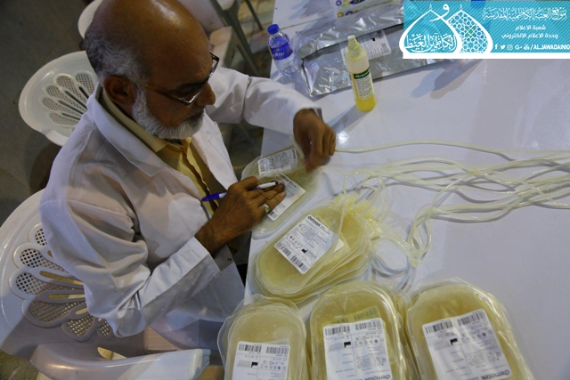 تتواصل في رحاب الصحن الكاظمي الشريف حملات التبرع بالدم مساء يوم السبت والأربعاء من كلّ أسبوع، بالتنسيق والتعاون مع مصرف الدم الوطني العراقي، وذلك لإنقاذ جرحى القوات الأمنية والحشد الشعبي المشاركين في عمليات تحرير نينوى وهي تسطر أروع الملاحم والانتصارات على العصابات الإرهابية، فضلاً عن اسهام هذه المبادرة في إشاعة ثقافة العطاء الإنساني بين أبناء بلدنا العزيز. كما تهيب الأمانة العامة للعتبة الكاظمية المقدسة بزائري الإمامين الجوادين الكرام وتدعوهم إلى المشاركة في هذا العمل المبارك، فإنكم من خلال التبرع بالدم تساهمون في إنقاذ حياة الكثير والكثير ممن هم بحاجة إليكم من المدافعين عن الوطن وغيرهم، وذلك لا يعلم أجره إلا الله عزّ وجل.