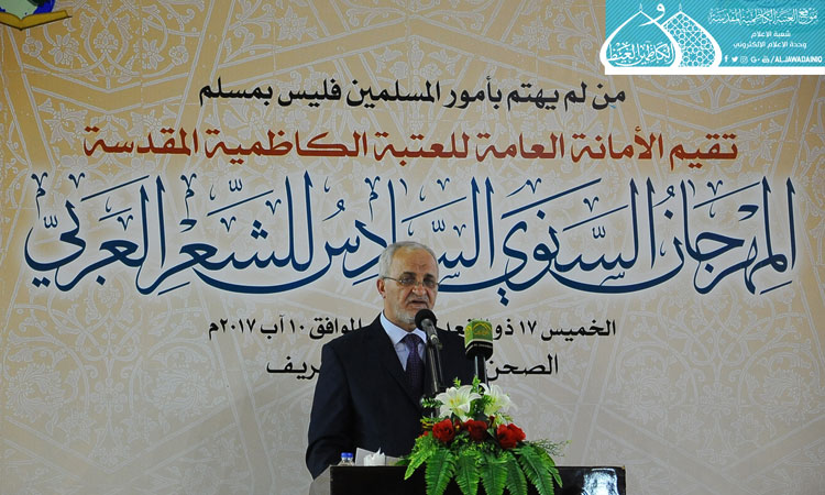 نص كلمة الأمانة العامة للعتبة الكاظمية المقدسة في حفل افتتاح المهرجان السنوي السادس للشعر العربي