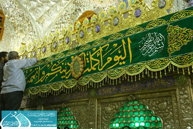أنهت الملاكات الفنية والخدمية في العتبة الكاظمية المقدسة الأعمال الموكلة إليها، وأعلنت عن استعدادها لإقامة مراسم الحفل المركزي الذي ستشهده رحاب الإمامين الجوادين"عليهما السلام" المزمع إقامته عصر الأحد 18 ذي الحجة 1438 الموافق 9 أيلول 2017 بمناسبة عيد الولاية الأعظم .. عيد الغدير الأغر وافتتاح مشروع إعادة تذهيب طارمة صحن قريش بعد إتمام العمل فيها، حيث عمّت أرجاء الصحن الكاظمي الشريف بالفرح والبهجة والسرور، ونشر الكلمات النورانية على الضريح الشريف استعداداً لاستقبال هذه المناسبة وتقديم أفضل الخدمات للزائرين الكرام الوافدين .