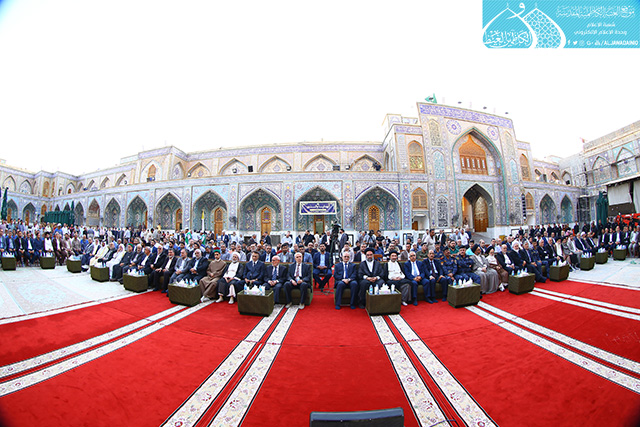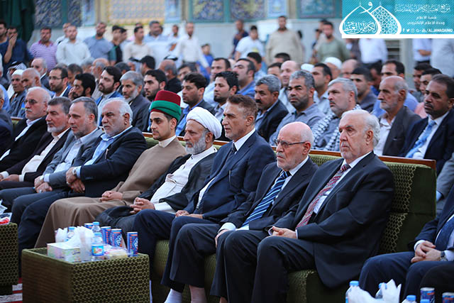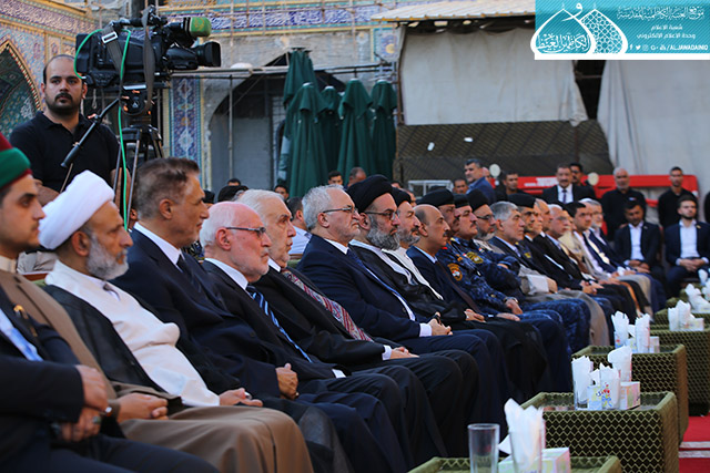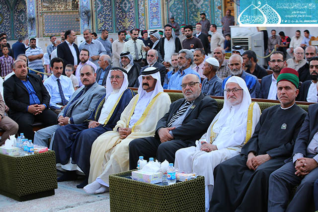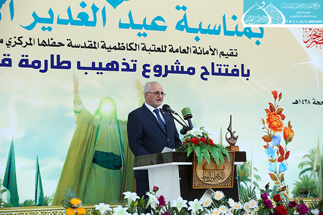 ابتهاجاً بيوم الميثاق المأخوذ والعهد المعهود والجمع المشهود، يوم التتويج الإلهي لوصي رسول الله "صلى الله عليه وآله" أمير المؤمنين وقائد الغر المحجلين وسيد المسلمين الإمام علي بن أبي طالب "عليه السلام", وبمشاركة الحشود الإيمانية الموالية التي جاءت لتؤكد انتمائها ولتجدد ولائها لإمامها في عيد الغدير الأغر, دأبت الأمانة العامة للعتبة الكاظمية المقدسة على إحياء هذه الذكرى المباركة بإقامة حفلاً بهيجاً, بحضور الأمين العام للعتبة الكاظمية المقدسة الأستاذ الدكتور جمال عبد الرسول الدباغ وأعضاء مجلس إدارة وممثلي العتبات المقدسة والمزارات الشريفة، وسفير الجمهورية الإسلامية الإيرانية وعدد من الشخصيات الدينية والاجتماعية والسياسية والقيادات الأمنية التي جاءت لتتشرَّف بإحياء هذه المناسبة المباركة , فضلاً عن الزائرين وخدّام الامامين الجوادين(عليهما السلام). أستهل الحفل بتلاوة مباركة من الذكر الحكيم أعقبها كلمة الأمانة العامة للعتبة الكاظمية المقدسة بهذه المناسبة الميمونة ألقاها أمينها العام هنأ في مطلعها إمامَي الجود والبركة "عليهما السلام" ومراجعنا العظام والعالم الإسلامي كافة, وبيّن قائلاً : إن أهميةَ عيدِ الغدير تكمنُ في تعيينِ الولايةِ الإلهية وانتخابِ الشخصية المثلى والوجودِ المقدس والأسوةِ الكاملة للمجتمعِ الإنساني ومثالا يُحتذى به، فعليٌّ "عليه السلام" هو الذي أضفى على الغدير قيمةً وشرفاً لأن مقامَه السامي كان السببُ الرئيسُ في اختيارِ السماء له.