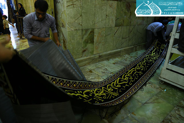 حري بالدنيا أن تتشح بالسواد لذكرى استشهاد سيد الشهداء الإمام الحسين "عليهم السلام"، نعم هكذا ينبغي أن نستقبل هذه المناسبة الأليمة ونحن نستذكر فاجعة أدمت قلوب محبي وأتباع أهل البيت "عليهم السلام" في مشارق الأرض ومغاربها، إذ اتَّشحت العتبة الكاظمية المقدسة بمظاهر الحزن والأسى ونشر السواد والكلمات النورانية على أعمدة الطارمات والأواوين في الصحن الكاظمي الشريف. كما سيشهد الصحن الكاظمي الشريف بإذنه تعالى في الساعة الثامنة والنصف بعد صلاتي العشائين يوم الخميس 29 ذي الحجة 1438هـ الموافق 21 أيلول 2017م المراسم السنوية لاستبدال رايتي قبتي الإمامين الجوادين"عليهما السلام" برايتي الحزن والأسى وذلك لتجديد العهد والولاء لأهل بيت النبوة "عليهم السلام"، فضلاً عن إتمام الاستعدادت والتحضيرات لاستقبال المواكب الحسينية وجموع الزائرين الوافدين إلى حرم الإمامين الجوادين "عليهما السلام" لتقديم آيات العزاء بهذا المصاب الجَلل.