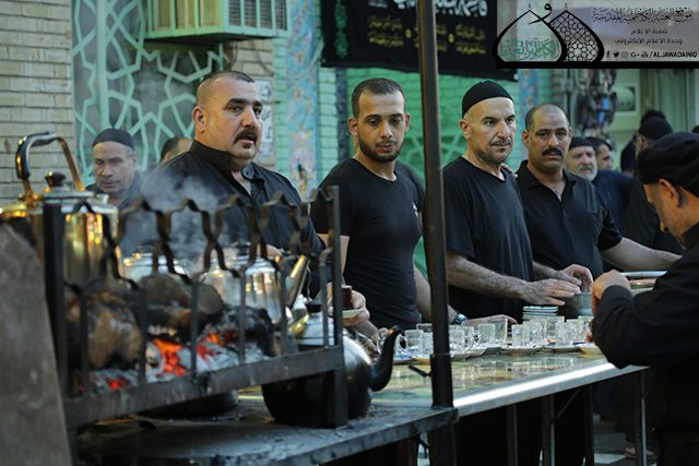 شأنها شأن باقي المدن الإسلامية دأبت مدينة الكاظمية المقدسة على إقامة المجالس الدينية والمواكب العزائية في شهر محرم الحرام ، ولكونها مدينةٌ لها خصوصيتها وقداستها المستمدة من احتضانها لجسدي الإمامين الكاظمين حفيدي الإمام الحسين "عليهم السلام "، لذا فمن الطبيعي أن يكون لها السبق والصدارة في أحياء مراسم العزاء .. فقد توزعت المواكب الحسينية في معظم مناطق المدينة ونصبت سرادقها هنا وهناك .. حتى الأطفال فيها نصبوا سرادقاتهم البسيطة على مقربة من بيوتهم، وبأكفهم الصغيرة حملوا اقداح الشاي وقناني الماء يريدون أن يقدموا خدمة وبما يتلاءم وقابلياتهم الجسمانية المحدودة لزوار الجوادين "عليهم السلام"، فقد تعلموا وسمعوا وتوارثوا من آبائهم بأن خدمة الأئمة الأطهار "عليهم السلام " هو شرف لا يدانيه شرف.
