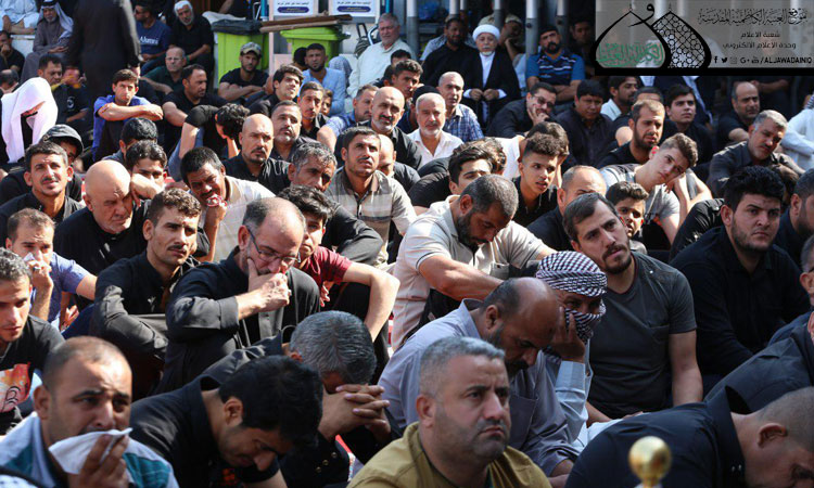 استهلت المراسم بتلاوة آيٍ من الذكر الحكيم، بعدها ارتقى المنبر فضيلة الشيخ نعيم السعدي لقراءة (المقتل الحسيني) وسرد القصة الكاملة لواقعة الطف الأليمة، وكيف طلعت في ذلك اليوم رؤوس الأسنّة والرماح والأحقاد وهي مشرعة لتلتهم جسد بقية النبوة ووريث الرسالة وحامل راية القيم السامية الإمام الحسين وأهل بيته وأصحابه الأبرار "عليهم السلام"، حينها ضج الحاضرون بالنحيب والبكاء وذرفوا الدموع حزنا وألماً على ما جرى من مأساة وحيف وظلم على أهل بيت العصمة "عليهم السلام". واختتمت تلك المراسم بتقديم أحر التعازي للإمامين الكاظمين "عليهما السلام"، والدعاء إلى قواتنا الأمنية والحشد الشعبي المدافعين عن بلدنا ومقدساتنا بأن يثبّت أقدامهم ويسدّد خطاهم ويكللها بالنصر الظفر.