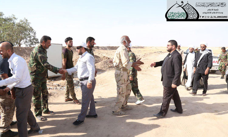توجه وفد خدام العتبة الكاظمية المقدسة وبرفقته كوكبة من فضلاء الحوزة العلمية الشريفة في لجنة الإرشاد والتعبئة للدفاع عن العراق والمقدسات التابعة للعتبة العلوية المقدسة لزيارة القطعات العسكرية وقوات الحشد الشعبي من لواء الطّف المنتشرة في محور تلال حمرين. واطلع الوفد على التطورات الأمنية الحاصلة في تلك المناطق والجهود التي يبذلها مقاتلو الحشد الشعبي للحفاظ عليها من دنس الجماعات الإرهابية. في الوقت ذاته قدّم الوفد الدعم المادي والمعنوي وشحذ همم المؤمنين الأبطال المُلبيّن لنداء الفتوى المقدسة، الذين قدّموا وما يزالون يقدّمون التضحيات الكبيرة حين سطّروا أروع الملاحم إلى جانب صفوف القوات الأمنية في الدفاع عن أرض العراق ومقدساته، كما أكد الوفد على المقاتلين الإلتزام بالوصايا السديدة للمرجعية الدينية العليا المتمثلة بسماحة آية الله العظمى السيد علي الحسيني السيستاني "دام ظله الوارف" والحذر من مكائد العدو وتقديم يد العون والمساعدة لأهالي المناطق المحررة.