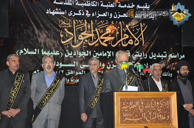 أجواء من الحزن والأسى احتضنتها العتبة الكاظمية المقدسة في رحاب الإمامين الجوادين (عليهما السلام) لتجدد أحزان أهل بيت النبوة وللإعلان عن المصيبة الراتبة التي أفجعت قلوب الموالين ألا وهي الذكرى الأليمة لاستشهاد تاسع أئمة الهدى الإمام محمد بن علي الجواد, (عليه السلام) حيث أجرت الأمانة العامة للعتبة الكاظمية المقدسة المراسم السنوية لاستبدال الرايات الخضراء التي تخفق فوق القبتين الشامختين للإمامين الجوادين(عليهما السلام) برايات الحزن السوداء بحضور الأمين العام للعتبة الكاظمية المقدسة أ.د (جمال الدباغ) وأعضاء مجلس الإدارة والعديد من الشخصيات الدينية والاجتماعية وخدمة العتبة المقدسة.