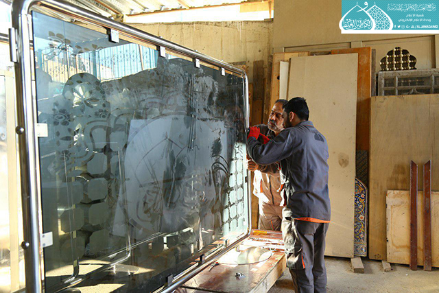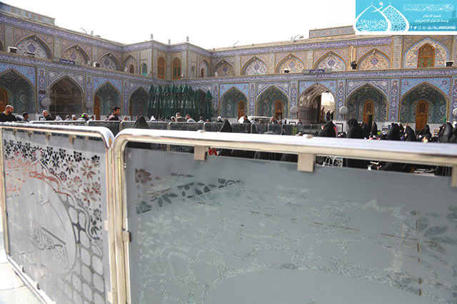 نصب قواطع زجاجية جديدة في رحاب الصحن الكاظمي الشريف