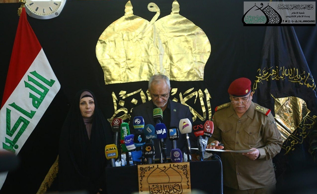 عقدت الأمانة العامة للعتبة الكاظمية المقدسة مؤتمراً صحفياً بعد ظهر يوم الخميس 12/4/2018 حول الزيارة المليونية التي شهدتها مدينة الكاظمية المقدسة في بذكرى استشهاد كاظم الغيظ الإمام موسى بن جعفر "عليه السلام" بحضور الأمين العام للعتبة الكاظمية المقدسة الأستاذ الدكتور جمال عبد الرسول الدباغ وقائد عمليات بغداد الفريق الركن جليل الربيعي والسيدة أمين بغداد الدكتورة ذكرى علوش. وبيّن الأمين العام للعتبة الكاظمية المقدسة أن عدد الزائرين الذين توافدوا لإحياء مراسم ذكرى استشهاد الإمام موسى الكاظم "عليه السلام" (5600000) خمسة ملايين وستمائة ألف زائر توافدوا نحو العتبة المقدسة قبل أيام من الزيارة لحين ظهر يوم الخميس الخامس والعشرين من شهر رجب الأصب 1439هـ ، متوقعاً ازدياد أعداد الزائرين حتى يوم السبت المقبل، كما أشار إلى أن عدد الوافدين من خارج العراق بلغ (300000) ألف زائر. من جانبها أعلنت أمين بغداد الدكتورة ذكرى علوش عن استمرار خطة أمانة بغداد الخدمية التي اشتركت فيها (7) مديريات بلدية و(1500) عامل خدمة و(220) آلية خدمية متخصصة، فضلاً عن مشاركة متطوعي وزارة الشباب والرياضة وعدد من مؤسسات المجتمع المدني. في الوقت ذاته أوضح السيد قائد عمليات بغداد مُعلناً نجاح الخطة الأمنية المثالية على حدّ وصفه، والتي تميزت هذا العام بالمرونة والإنسابية والجهد الاستخباري المتميز.