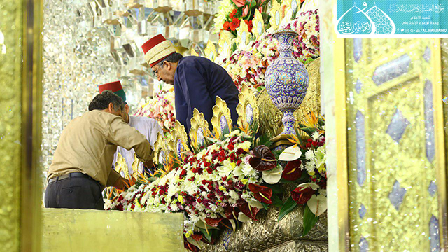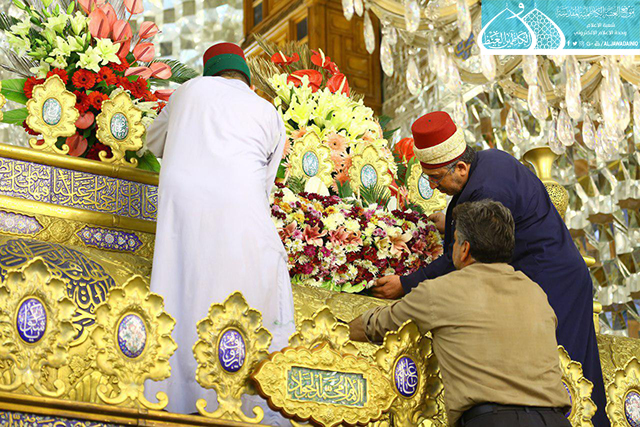 تيمناً بقدوم شهر شعبان المُعظم والذكرى المباركة لولادة الإمام الحسين وأخيه أبي الفضل العباس والإمام السجاد وأخيه علي الأكبر والحجة بن الحسن "عليهم السلام"، توشحَ مرقدي الإمامين الكاظمين "عليهما السلام" بأكاليل الزهور الطبيعية ذات الألوان المتناسقة، ومن أصناف ونوعيات فريدة وفاخرة قدّر عددها أكثر من (15000) زهرة، فضلاً عن نشر الكلمات النورانية في أعمدة وأواوين الطارمات ابتهاجاً بهذه المناسبة الميمونة.