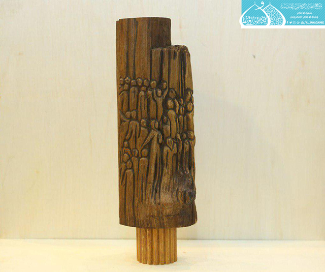 قطع خشبية ما يميزها إنها من بقايا الهيكل القديم للمنائر الذهبية في الصحن الكاظمي الشريف، تعرضت إلى التأكل ونحتها تقادم الزمن حتى تغيّرت أشكالها وألوانها، واليوم أضحت تُحفاً فنية ذات قيمة عالية تحاكي الروح الإنسانية، وتُعرّف عن نفسها وقدمِها وموروثها وما اكتسبته من هذا المكان الطاهر .. بعد أن تعاملت معها أنامل ملاكات وحدة النقش والزخرفة في العتبة الكاظمية المقدسة بمهارة فنية عالية وحرفية وإتقان، وللتعرف عن طبيعة تلك الأعمال تحدث مدير وحدة النقش والزخرفة الأستاذ إبراهيم النقاش لموقع العتبة المقدسة الإلكتروني قائلاً: بعدما شهدته المنائر الذهبية من أعمال صيانة فضلاً عن استبدال بعض قطع الأبواب الرئيسة للصحن الكاظمي الشريف، استطاعت وحدة النقش والزخرفة من استثمار هذا الخشب الذي يتميّز بقدَمهِ وعراقته وجودة أنواعه فضلاً عن أشكاله المختلفة حيث تم إضافة بعض اللمسات البسيطة عليه بأسلوب إبداعي ممزوج بالنضج والأحساس الكبيرين ليخرج لنا بمجسمات تشكيلية وصور متنوعة ذات دلالات فكرية وملامح أثرية في غاية الروعة والجمال، كل قطعة منها تتيح فسحة من التأمل وتثير الانتباه، وتستطيع أن تحكي إلى الجمهور عن قصتها وسرّها كونها جزءً من هذه الرحاب القدسية الطاهرة.