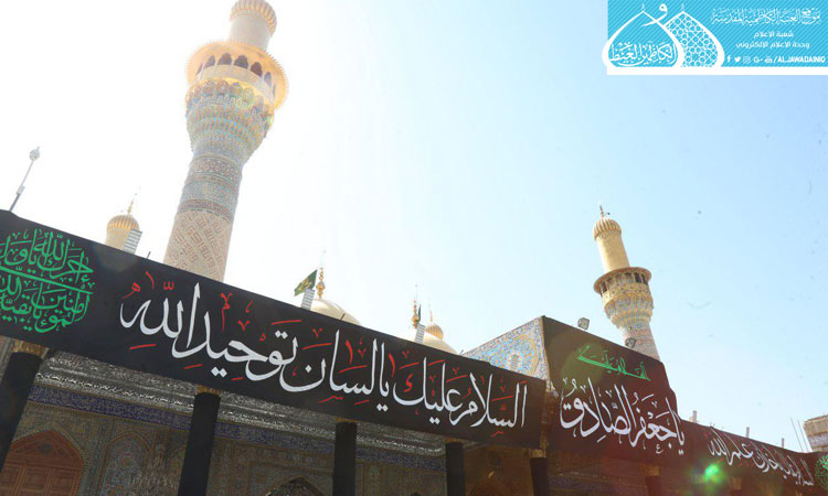 اتَّشحت العتبة الكاظمية المقدسة بمظاهر الحزن والأسى إيذاناً لاستقبال الذكرى الأليمة لاستشهاد المؤتمن على الشرع المُبين والمدافع عن عقيدة سيد المرسلين "صلّى الله عليه وآله" الإمام جعفر بن محمد الصادق"عليه السلام"، حيث تم نشر السواد والكلمات النورانية على الضريح الشريف للإمامين الجوادين "عليهما السلام" وأعمدة الطارمات والأواوين للحرم المطهر.