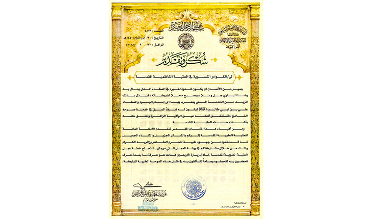 في الوقت ذاته تقدّمت الأمانة العامة للعتبة العلوية المقدسة بالشكر والتقدير إلى الملاكات النسوية في العتبة الكاظمية المقدسة لدورهن الكبير وجهودهن المباركة في خدمة هذا المكان المقدس والزائرات الكريمات.