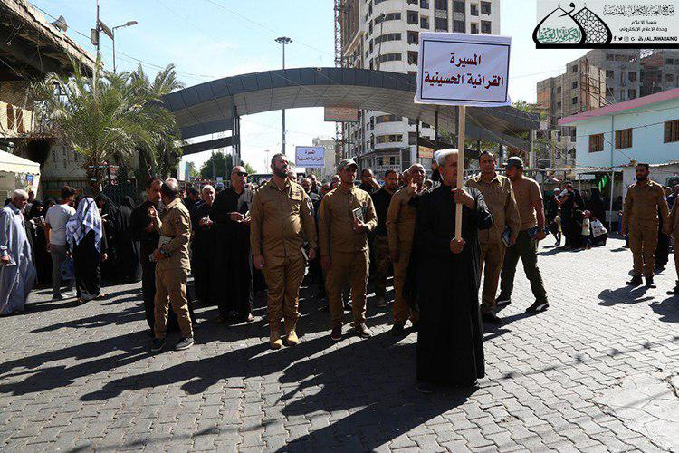 تجسيداً لقول النبي الأكرم (صلّى الله عليه وآله وسلم): (إني تارك فيكم الثقلين كتاب اللّه وعترتي أهل بيتي، ما إن تمسكتم بهما لن تضلّوا بعدي أبداً)، وإحياءً لملحمة الطف الخالدة التي جسّد فيها الإمام الحسين وأهل بيته وأصحابه(عليهم السلام) جميع القيم الإنسانية والإيمانية والأخلاقية التي جاء بها القرآن الكريم، أقيمت مسيرة قرآنية حسينية حاشدة دعا إليها المركز الوطني لعلوم القرآن التابع لديوان الوقف الشيعي وبالتنسيق مع العتبة الكاظمية المقدسة وبمشاركة المؤسسات والروابط القرآنية في بغداد وجمع من مشايخ وأساتذة القرآن الكريم وطلبة الدورات القرآنية، كما شارك في هذه المسيرة الولائية التي انطلقت صباح السادس والعشرين من شهر محرم الحرام عام 1440هـ الموافق 6 من تشرين الاول عام 2018م دار القرآن الكريم في العتبة الكاظمية المقدسة، والعتبتين المقدستين الحسينية والعباسية فضلاً عن مشاركة القسم النسوي في المركز الوطني لعلوم القرآن.