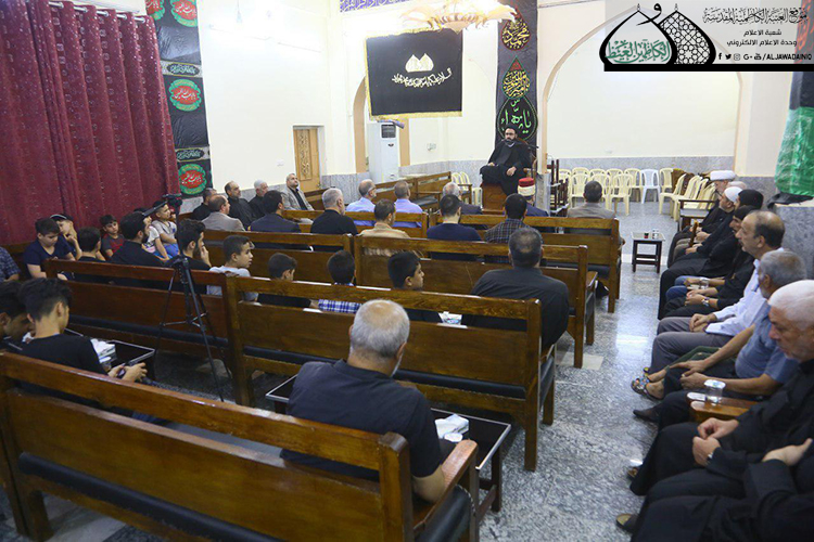 ان المجالس الحسينية من أبرز مصاديق التمسك بالثقلين: القرآن الكريم والعترة، وکأنها الاجتماع الوحيد الذي يُؤدى فيه حقّ النبي الأكرم وأهل البيت الأطهار "عليهم السلام"، حيث دأب خدّام العتبة الكاظمية المقدسة على حضور المجالس التابينية التي تُقيمها حسينية النواب بمشاركة خطيب المنبر الحسيني سماحة السيد محمد رضا شرف الدين، وأشار في بحثه إلى: ( موازين الفوز والخسران في الخطة الإلهية ودورها في التنشئة التربوية)، والقائمة على إتاحة طريق الاختيار الصائب للإنسان. مستشهداً بقوله تعالى: (كُلا نُّمِدُّ هَٰؤُلاءِ وَهَٰؤُلاءِ مِنْ عَطَاءِ رَبِّكَ).