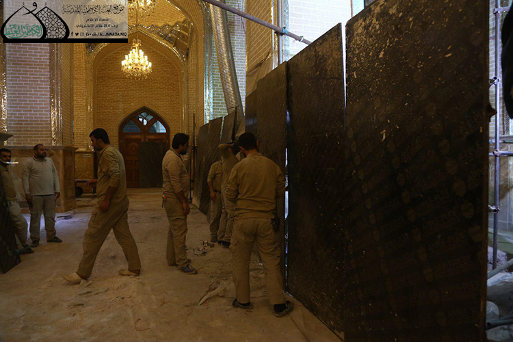 تأهّبت فرق وحدة النجارة والألمنيوم التابعة إلى شعبة الميكانيك بتنفيذ مجموعة من الأعمال الخدمية والفنية في الصحن الكاظمي الشريف ومنها نصب القواطع الخشبية للحفاظ على انسيابية الدخول والخروج، فضلاً عن تخفيف الزخم المتوقع حصوله خلال ساعات ذروة الزيارة داخل الحرم الشريف، في الوقت الذي تسعى فيه الأمانة العامة للعتبة الكاظمية المقدسة من خلال هذه الجهود المتواصلة إلى تقديم الخدمات المتنوعة للوافدين المتواجدين في مدينة الكاظمية المقدسة لينعموا بالراحة والطمأنية لإكمال مراسم الزيارة عند الإمامين الجوادين "عليهما السلام" على أكمل وأتم وجه.