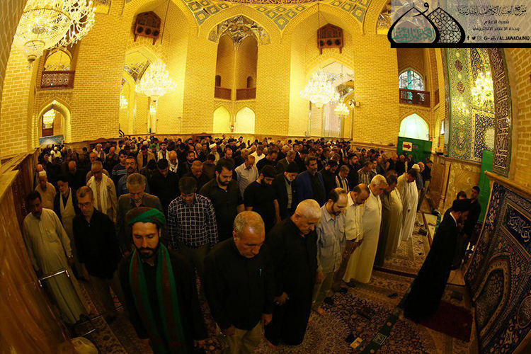 قال أبو ثمامة الصائدي أحد أصحاب الإمام الحسين "عليه السلام"،ها قد حلّ وقت الصلاة، فقال له الإمام "عليه السلام": (ذكرت الصلاة، جعلك الله من المصلين الذاكرين)، حيث أضحت مسيرة الإمام الحسين "عليه السلام" رسالة حق لتصحيح سلوك الإنسان وذلك عن طريق إرتباطه وصِلته بالله تعالى من خلال الالتزام بأداء الصلوات والمحافظة عليها للفوز بثوابها، ومع تصاعد وتيرة حركة الزائرين، ومن جوار الإمامين الكاظمين "عليهما السلام" احتشدت جموع الزائرين والوافدين لإحياء موسم أربعينية الإمام الحسين "عليه السلام" بقلوب مفعمة بالشوق لله تعالى لإقامة صلوات الجماعة الملازمة للمشروع التبليغي الحوزوي وأداء فريضة صلاة العشائين، وهم يتضرعون إلى المولى العليّ القدير بأن يحفظ العراق وشعبه الكريم، وأن يكتبهم من زوار الأربعين وأن ينصر القوات الأمنية ومقاتلي الحشد الشعبي ويرحم شهدئنا الأبرار أنه سميع مجيب.
