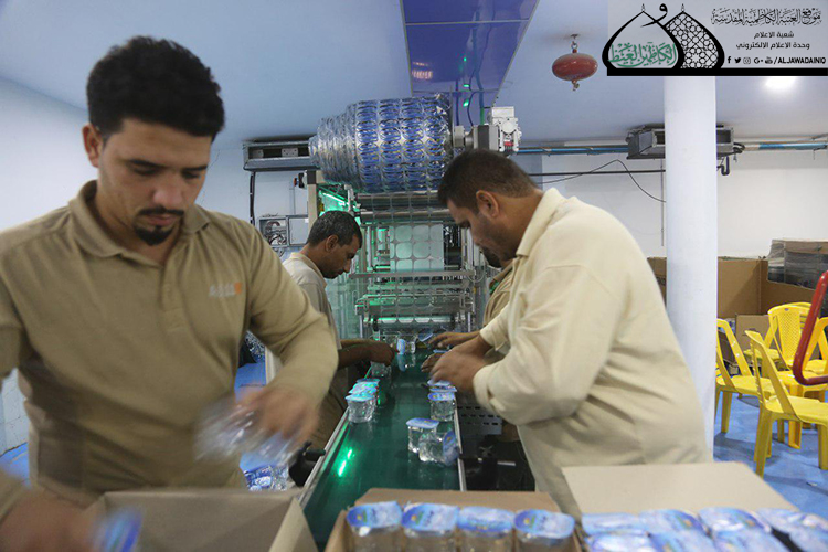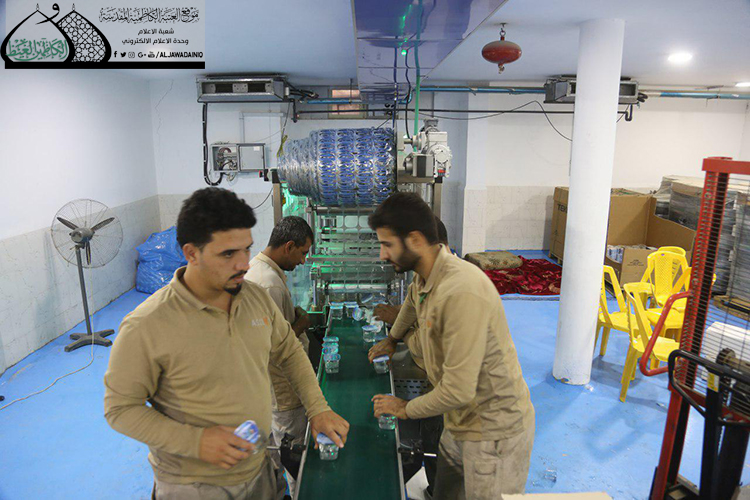 سخّر معمل المراد لانتاج المياه المعدنية التابع إلى شعبة الهندسة الميكانيكية كامل طاقته الإنتاجية منذ بدء برامج الخطة الخدمية الخاصة بزيارة أربعينية الإمام الحسين "عليه السلام"، حيث يتم إنتاج كميات كبيرة من المياه النقية والصحية التي تتميز بالجودة العالية، لتلبّية حاجة العتبة المقدسة، ودعم المواكب الحسينية ومواقع مبيت وإيواء الزائرين في مدينة الكاظمية المقدسة.