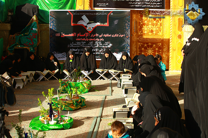 شهدت العتبة الكاظمية المقدسة نشاطات ثقافية متعددة في شهر محرم الحرام لإحياء ذكرى استشهاد الإمام الحسين وأهل بيته وأصحابه(عليهم السلام), وكان من بين تلك النشاطات الملتقى الزينبي الثقافي النسوي الذي أقيم في رحاب الصحن الكاظمي الشريف والذي حظي برعاية مباشرة من قبل الأمانة العامة للعتبة الكاظمية المقدسة, وكان من أبرز فقرات هذا الملتقى إقامة الختمة القرآنية النسوية مهداة إلى الإمام الحسين (عليه السلام ) وشهداء الطف, بالتعاون مع دار القران الكريم التابع لقسم الشؤون الفكرية والثقافية في العتبة المقدسة, والتي استمرت على مدى أيام شهر محرم الحرام تحت شعار: (ثورة الإمام الحسين(عليه السلام) عطاء لا ينضب) و شارك في هذا النشاط القرآني المميز نخبة طيبة من النساء المؤمنات وبحضور الزائرات اللواتي توافدن لزيارة الإمامين الجوادين(عليهما السلام)، وشملت الجلسة القرآنية الختامية على فقرات مختلفة, كان أهمها التعريف بفضائل السور الخاصة بالجزء الأخير من القرآن الكريم، وقراءة دعاء ختم القرآن، إضافة إلى توزيع الهدايا على المشاركات في هذه الختمة المباركة.