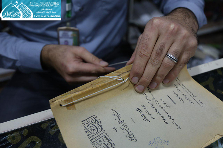 وأضاف: ان هذه المؤلفات تحتاج إلى دقة متناهية في التعامل معها وذلك لقِدمِها حيث تجاوزت أعمارها عقوداً من الزمن، وأغلبها كانت في مكتبات لشخصيات دينية وعلمائية تبرّع بها أصحابها ومتوليها إلى العتبة الكاظمية المقدسة للحفاظ على تلك النتاجات المعرفية، وأغلب تلك المؤلفات تعرّضت إلى عوامل التلف الطبيعية والخارجية، حيث تولّى عددٌ من الخدم مهمة المعالجة بطرق فنية حديثة، تم تأهيل ما يقارب (425) كتاباً لحد الآن، بعد مرورها بمراحل عدّة بدءً من جمع الرزم المتفككة، وتثبيت ورق "الكارب"، وانتهاءً بصناعة الغلاف الخارجي وتركيبه.