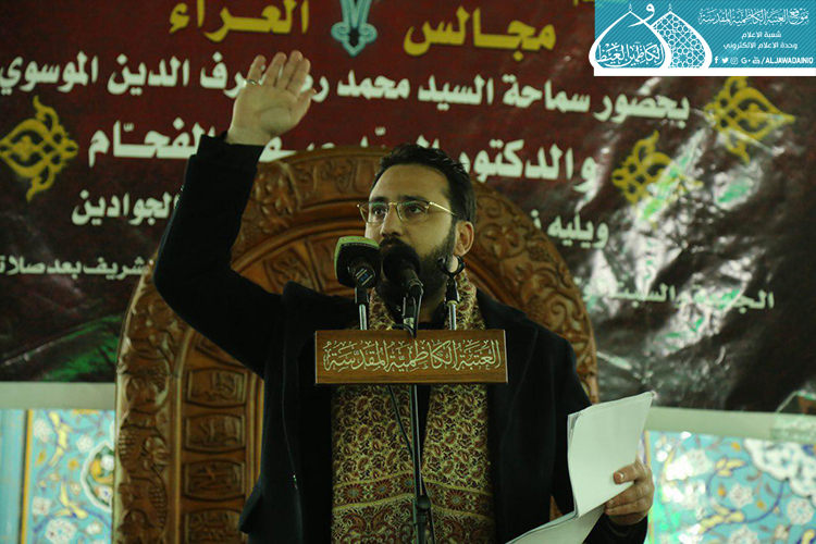 في وقفة من وقفات الحزن الأليمة, نستذكر وبلوعة مصاب عظيم على أهل بيت النبوة "عليهم السلام" ألا وهو استشهاد البضعة الطاهرة فاطمة الزهراء "عليها السلام"، فما كان للمحبين في هذه الأيام إلا إحياء أمرها وبيان مظلوميتها وتخليد ذكراها العطرة، وبهذه المناسبة الأليمة أعدت الأمانة العامة للعتبة الكاظمية المقدسة برنامجاً تأبينياً حافلاً استضافت خلاله كلاً من خطيبي المنبر الحسيني سماحة السيد محمد رضا شرف الدين الموسوي، والدكتور السيد صفاء الفحام، واتحفا الحضور بمحاضراتهما الدينية القيّمة حيث استعرضا شذرات من حياة السيدة الزهراء "عليها السلام" مستشهدين بموقفها تجاه الرسالة المحمدية وتضحياتها الجليلة في سبيل الإسلام، والحث على اقتفاء أثرها والسير على نهجها القويم.