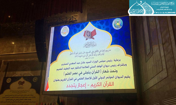 حضر وفد العتبة الكاظمية المقدسة الذي ترأسه أمينها العام الأستاذ الدكتور جمال عبد الرسول الدباغ والوفد المرافق لهُ، فعاليات حفل افتتاح المؤتمر الدولي الأول للإعجاز العلمي في القرآن الكريم، بعنوان: " القرآن الكريم ـ إعجاز يتجدد "، الذي أقامته رئاسة ديوان الوقف السُني برعاية رئيس مجلس الوزراء وتحت شعار: (القرآن يتجلّى في عصر العلم)، بمشاركة كوكبة من العُلماء والفقهاء والباحثين والمهتمين بالشأن القرآني من مختلف دول العالم.