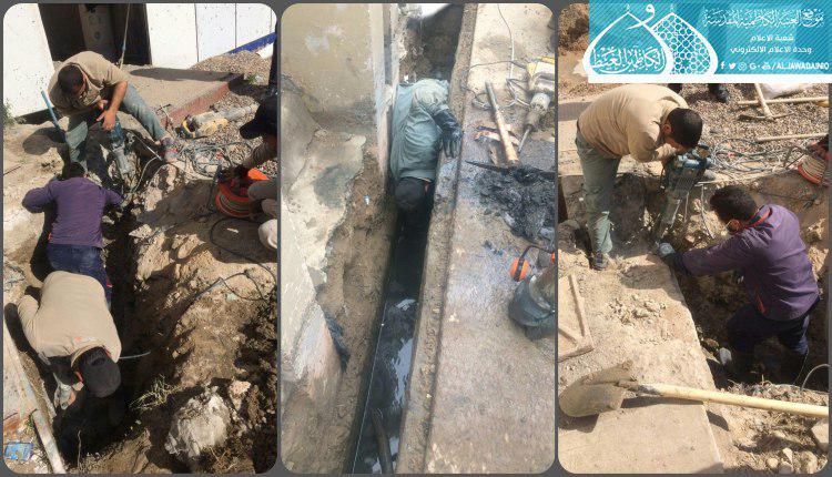 تأهيل الخط الرئيس لشبكة الصرف الصحي والمياه الثقيلة في الجانب الشرقي للبناية، حيث تم حفر وإزالة الأنبوب القديم، ومدّ أنبوب جديد بقطر (6 انج)، وبطول (70م)، وبعمق (1م)، وكذلك صبّ المشبّكات الجديدة وربطها بحوض التعفير الرئيس.