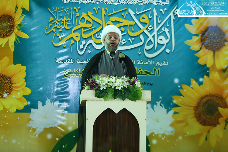 وأضاف: علينا أنْ نتَّخذَ من مبدأ الإمامينِ "عليهما السلام" صاحبَيْ هذه الذكرى المباركة وسيلةً للثباتِ على المبدأِ وحبِّ أهلِ البيتِ الميامينَ مهما كلَّفَنا هذا الثباتُ وهذا الحبُّ من تضحية) .