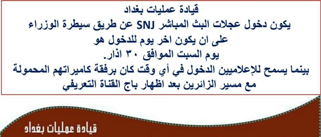 هناك دور كبير ومهم تؤديه القوات الأمنية، وعلى وجه الخصوص في المناسبات المليونية التي تشهدها مدن العتبات المقدسة، لأجل سلامة الزائرين الكرام، والمحافظة على أمنهم وسلامتهم، ومنع المحاولات الإرهابية من التأثير على صفو الزيارة، حيث دعت قيادة عمليات بغداد/ الإعلام والتوجيه المعنوي الزائرين الكرام وأصحاب المواكب الخدمية الالتزام بالتعليمات وإتباع الوصايا الواردة في بطاقة الوعي الأمني الآتية: