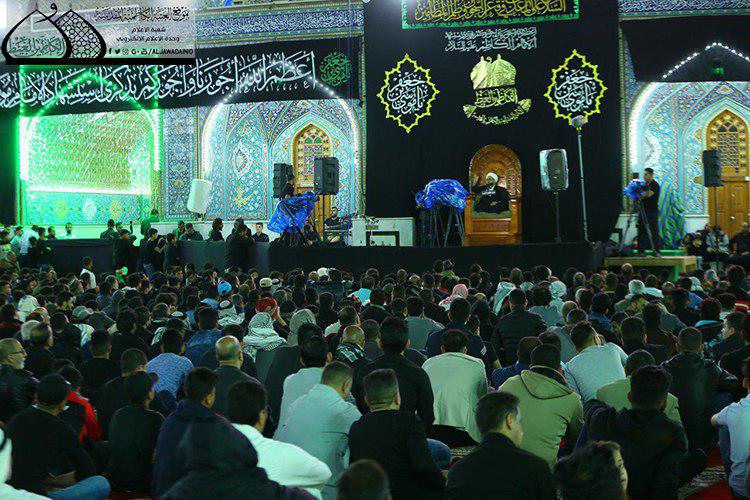 في أجواء رفرفت فيها رايات الحزن السوداء، ووسط تدفق كثيف لزائري الإمامين الجوادين "عليهما السلام" الذين توافدوا إلى هذا المكان الطاهر ونيران الأسى واللوعة في قلوبهم، جاءوا ليعبّروا عن خالص وفائهم، وتقديم آيات الولاء والعزاء إلى إمامهم المسموم المظلوم المعذّب في قعر السجون وظُلم المطامير، حيث أعدّت الأمانة العامة للعتبة الكاظمية برنامجاً عزائياً خاصاً لهذه المناسبة الأليمة حافلاً بالنشاطات الدينية والثقافية، ارتقى فيه المنبر الحسيني فضيلة الشيخ أحمد الربيعي، تطرّق إلى السيرة الشريفة للإمام الكاظم "عليه السلام" الذي استطاع من خلالها أن يكسر قيود جبابرة الظلم والطغيان وجعل من طامورة السندي مناراً للإنسانية جمعاء.