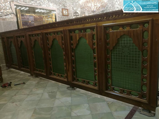وحدة النجارة والألمنيوم تَنصب القواطع الجديدة للحرم الكاظمي الشريف
