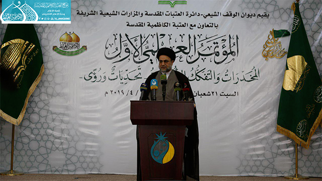 وأضاف: أن مرجعيتنا الرشيدة هي أول من نبّه إلى خطر هذه الظواهر من خلال منبر الجمعة والبيانات المباركة والتصدي لها بقوة وحزم، لذا فالغاية من المؤتمر العلمي هو تكليف الأخوة الباحثين لدراسة هذه الظواهر وتشخيصها ومعرفة أسبابها والدواعي التي أودت إلى تفشيها والجهات التي تقف ورائها وتحديد سبل معالجتها ).