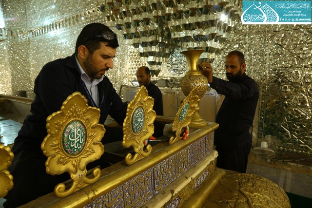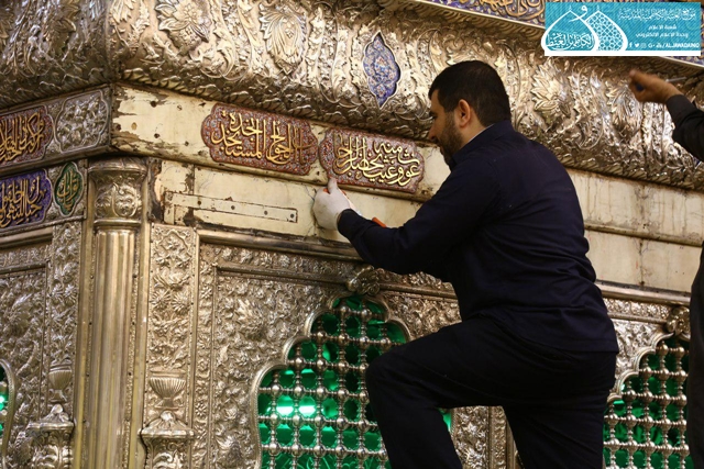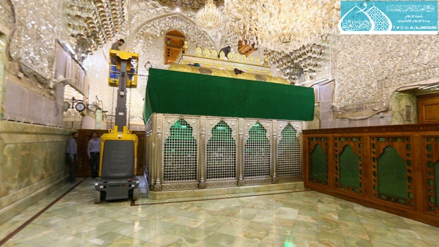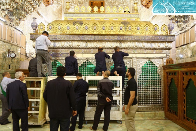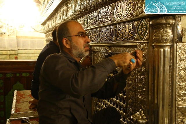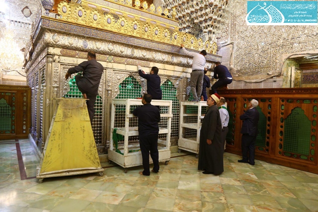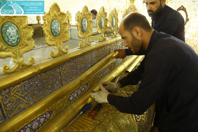 إذ بدأت تلك الأعمال بتفكيك الأجزاء العلوية منه ليتم بعد ذلك نقلها وصيانتها وتذهيبها في الورش المتخصّصة في مصنع السّقاء، لأجل إدامتها بدقة وجودة عاليتين، من خلال إزالة عوامل الأكسدة والترسبات بعد تأثرها بعوامل الرطوبة والتأثيرات الخارجية، سعياً للحفاظ على بهائهِا وصورتها الجميلة التي تتناسب مع الأجواء الإيمانية لهذا المكان المقدس.