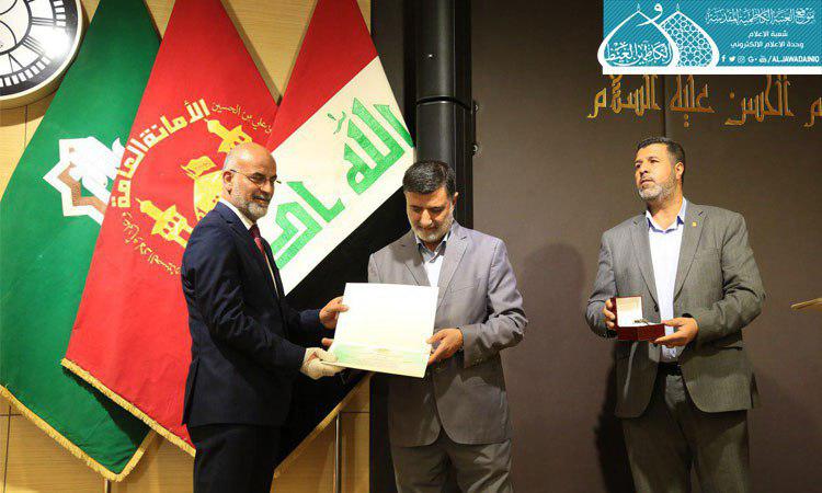 حضر وفد العتبة الكاظمية المقدسة حفل تكريم وسائل الإعلام المحلية والدولية المُشاركة في فعاليات مهرجان ربيع الشهادة الثقافيّ العالميّ الخامس عشر الذي أقامته الأمانتان العامتان للعتبتين المقدستين الحسينية والعباسية تحت شعار: (الإمامُ الحسين"عليه السلام" منارٌ للأُمم وإصلاحٌ للقِيَم).