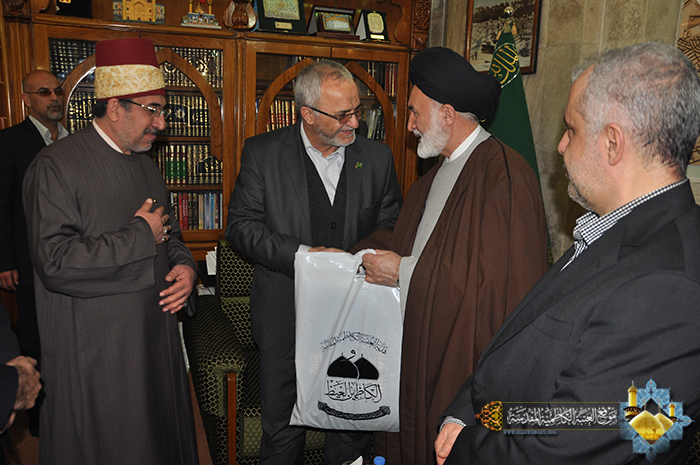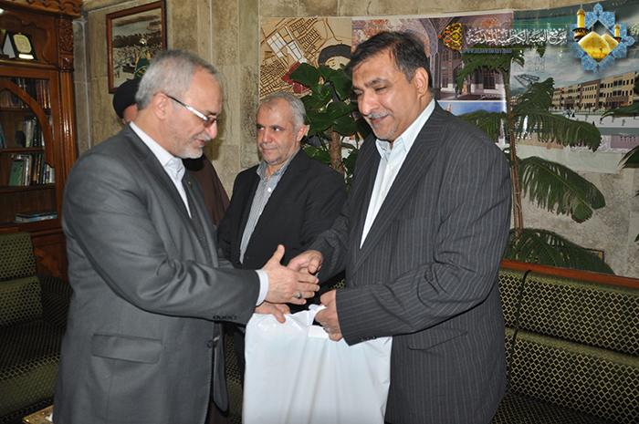 تشرف بزيارة الإمامين الجوادين(عليهما السلام) وزير السياحة الايراني د (سعيد أوحدي) ورئيس هيئة الحج والعمرة الايراني سماحة السيد (قاضي عسكر) برفقة الدكتور(لواء سميسم) وزير السياحة والآثارالعراقي, وبعد أدائهم مراسم الزيارة والدعاء عند ضريحي الإمامين الهمامين موسى بن جعفر ومحمد الجواد (عليهما السلام), حل الوفد ضيفاً كريماً في مقر الأمانة العامة للعتبة الكاظمية المقدسة, واستقبلوا من قبل الأمين العام للعتبة الكاظمية المقدسة أ.د (جمال الدباغ) وعدد من أعضاء مجلس الإدارة بكل حفاوة وترحيب وأعرب الأمين العام عن سعادته وسروره البالغين بهذا اللقاء, كما عبر الوفد الزائر عن شكره وامتنانه لحسن الضيافة والاستقبال داعياً بالتوفيق والسداد لجميع المسؤولين والقائمين على خدمة العتبة المطهرة كما قدمت للوفد الضيف الهدايا من بركات الإمامين الجوادين(عليهما السلام).