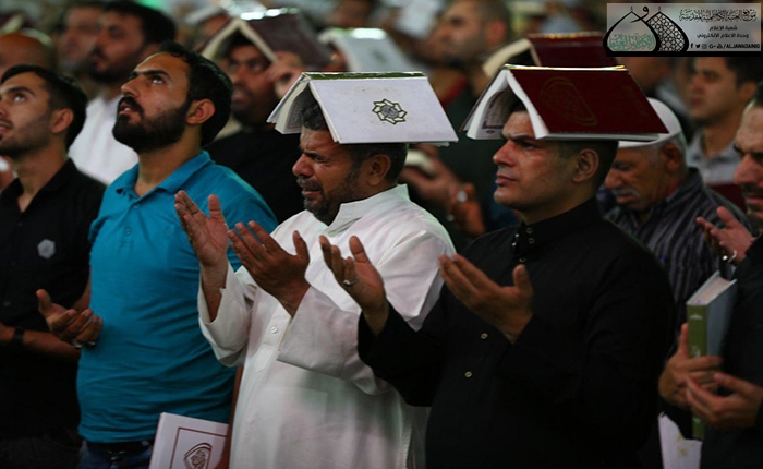 ثم ابتهلت هذه الجموع المؤمنة التي غصّت بها هذه الرحاب الطاهرة إلى المولى العلي القدير أن يتقبّل منها خالص الدعاء والأعمال في هذه الليلة وسائر الليالي والأيام وأن ينعم على بلدنا العراق بالخير والأمن والأمان.