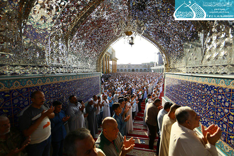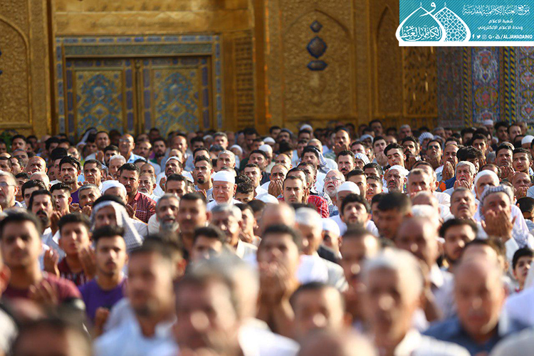 وابتهل المصلون إلى العليّ القدير بالدعاء بتعجيل فرج مولانا صاحب العصر والزمان الإمام المهدي المنتظر "عجل الله فرجه الشريف" وأن يحفظ مرجعيتنا العُليا المتمثلة بسماحة آية الله العظمى السيد علي الحسيني السيستاني "دام ظله الوارف"، وأن يحفظ العراقيين بكلّ طوائفهم ومكوناتهم ويظلّلهم بظلال الرحمة ويجنّبهم كلّ مكروه ويَعم الأمن والأمان على بلدنا العزيز، وأن يجعل هذا اليوم العظيم مناسبة للتطلّع لمستقبل واعد ينتظره عراقنا العزيز لبلوغ الغاية المنشودة وهي الإصلاح والإستقامة بإذن الله تعالى، وأن يكلّل جهود قواتنا الأمنية والحشد الشعبي بالنصر والظفر ويرد كيد الكائدين.