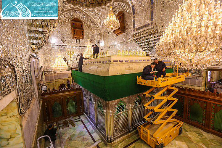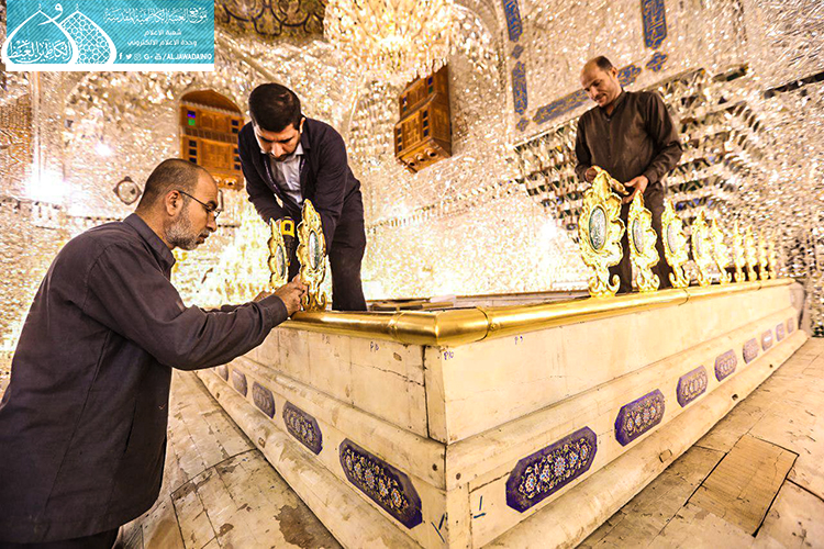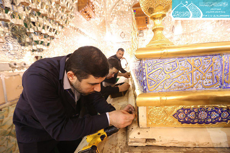 قام فريق مَصنع السقّاء الخاص بصناعة الشبابيك والأبواب للمراقد المقدسة التابع للعتبة العباسية المقدسة وبالتعاون مع الملاكات الفنيّة في العتبة الكاظمية المقدسة بأعمال نصب وتركيب الأجزاء العلوية لشبّاك ضريح الإمامين الجوادين "عليهما السلام" بعد صيانتها وإعادة تذهيبها.