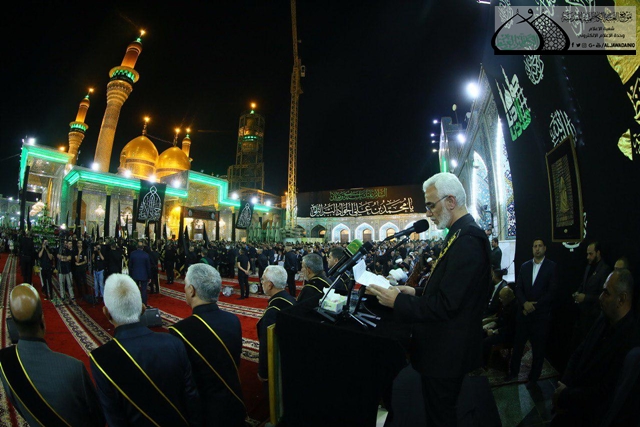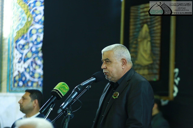 وأضاف قائلاً: (وما تضحيات أبنائنا من في صفوف القوات الأمنية بمختلف صنوفها والمتطوعين الملبّين لفتوى الدفاع الكفائي لسماحة المرجع الديني الأعلى آية الله العظمى السيد علي الحسيني السيستاني " دام ظله الوارف" إلا صورة من صور النصرة والتمهيد لصاحب العصر والزمان.. واسمحوا لي أيها الأحبة أن أشكر –وإن كان هذا الشكر لا يعد ذا بال- أبناء الجهاد وجميع القوات الأمنية الذين خاضوا بحر الجهاد وسلكوا سبيل ذات الشوكة، واسترخصوا النفوس الغالية واختاروا المنية على الدنية وجعلوا دماءهم الزكية ثمنا للحرية والحياة الأبية.. والشكر موصول للشجعان الذين علقوا أوسمة العز على أجسادهم في ميادين الوغى، لتذكرنا جراحاتهم وإصاباتهم بجميل صنعهم فينا وعظيم فضلهم علينا أولئك هم الشهداء الأحياء.. والثناء كل الثناء على جميع الكرماء أصحاب السخاء عوائل الشهداء الذين بذلوا للدين والأرض والعرض والمقدسات وبطيب خاطر في سبيل الله ومن أجل سلامتنا فلذات أكبادهم وثمرات أفئدتهم)