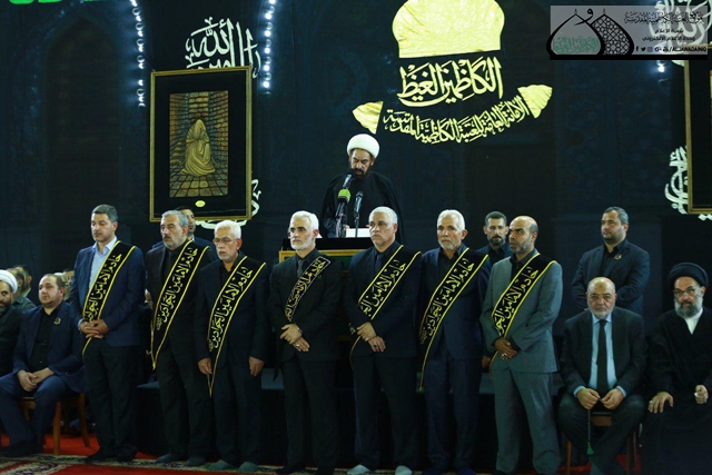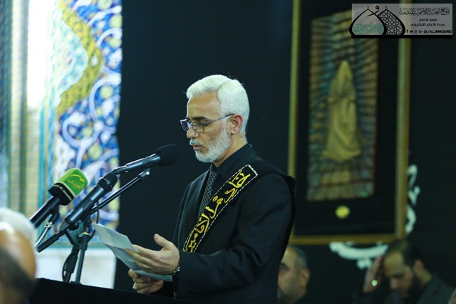 تلتها كلمة الأمانة العامة للعتبة الكاظمية المقدسة وألقاها أمينها العام الأستاذ الدكتور حيدر الشمّري قائلاً: ( ونحن نعيش آلام المصاب وأسى هذه الفاجعة المريرة لا بد لنا من وقفة نستلهم فيها الدروس والعبر من سيرة هذا الإمام المظلوم.. ذلك الشاب الذي كرّس سنين حياته رغم قصرها لخدمة الدين والحفاظ على الرسالة السمحاء التي جاء بها جده المبعوث للناس كافة نبينا الأكرم محمد "صلّى الله عليه وآله وسلّم" وترسيخ العقيدة الحقة ومجابهة الانحرافات الفكرية والتيارات الفاسدة التي أخذت تنخر جسد المجتمع آنذاك.. وهو درس حي لشباب اليوم في كيفية المحافظة على القيم التي أرساها أهل البيت عليهم السلام والإصرار على مواجهة الغزو الثقافي الذي شنه أعداء الله هنا وهناك.. فمسؤولية الشباب جسيمة في النهوض بواقع المجتمع وعليهم أن يمارسوا دورهم للارتقاء بالإنسان في شتى مناحي الحياة ).