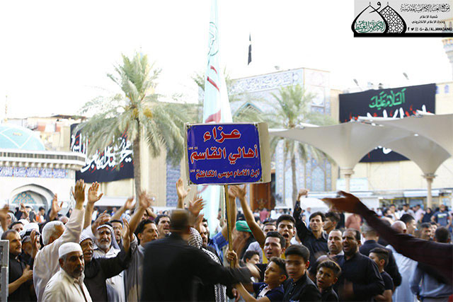 توافد جمع من أهالي مدينة القاسم بن الإمام موسى بن جعفر الكاظم "عليه السلام"، ومواكبها المشرّفة في محافظة بابل لتجديد البيعة والعهد لشباب الأئمة الإمام محمد بن علي الجواد "عليه السلام" في ذكرى استشهاده، حيث تجسّدت فيهم صور الولاء لأهل بيت النبوة "عليهم السلام" متمسكين بفكرهم النيّر وبخطهم الرسالي، حين قَدِموا إلى أرض العصمة والإمامة مدينة الكاظمية المقدسة، صدحت حناجرهم بكلمات الأسى وهم يواسون أهل بيت العصمة "عليهم السلام" بهذا المصاب الجلّل.