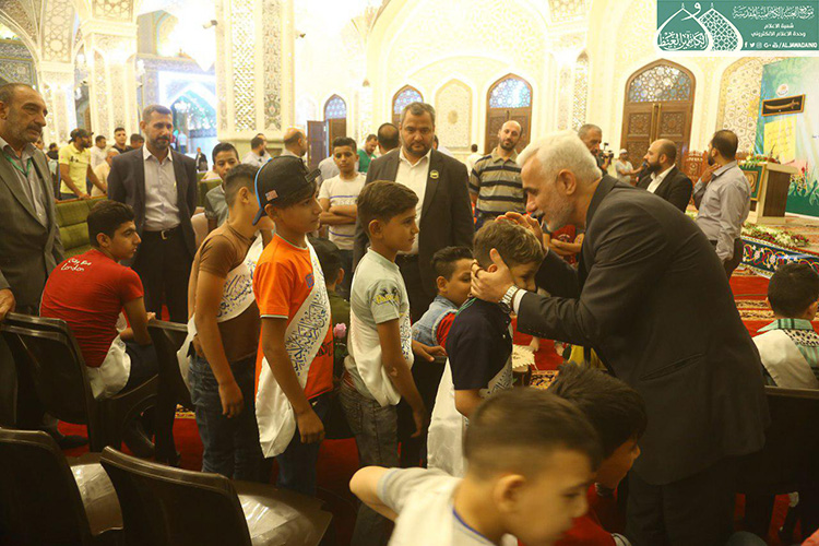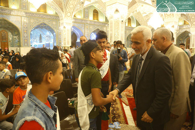كما تخلّل الحفل الأهازيج والرّدات بمشاركة خادم الجوادين الرادود مصطفى الكناني حيث أضفى روح الفرح والبهجة والسرور في نفوس المؤمنين من زائري الإمامين الجوادين "عليهما السلام"، واختتم الحفل بتكريم عدد من عوائل شهداء حشد الشعبي والاحتفاء بأبنائهم الأيتام بالتعاون والتنسيق مع مؤسسة العين للرعاية الاجتماعية المباركة.