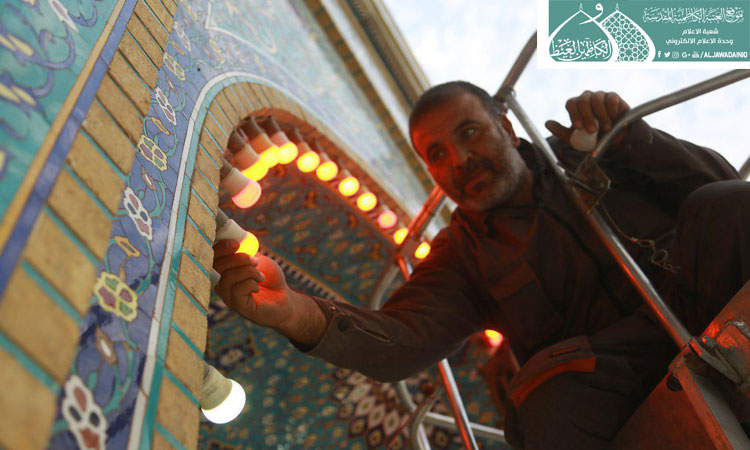 شعبة الهندسة الكهربائية في العتبة الكاظمية المقدسة .. تشرع بأعمال تغيير الإنارة لاستقبال شهر الأحزان