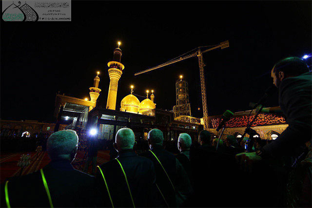 وأضاف: أن من عزم سيد الثائرين وقبلة المجاهدين استُمدّت فتوى الدفاع الكفائي لتكون المرجعية الدينية العُليا على خطى الحسين في نصرة الدين والدفاع عن الإسلام المحمدي الأصيل فثورته "عليه السلام" كانت في سبيل الله، وفتوى المرجعية الرشيدة كانت من أجل بقاء كلمة الله هي العُليا وحفظ الدين من الزيغ والانحراف .. نعم تكرر المشهد وتغير الأشخاص فسقط الشهداء يوم الطف لتزفهم الملائكة إلى جنات الخلد، وفي زماننا هذا أيضاً ما زالت مواكب الشهداء يُزَفون إلى جنات الفردوس العاليات مع الحسين .. كان أبوه أمير المؤمنين فالحسين أمير الشهداء يقودهم إلى مقعد صدق عند مليك مقتدر، كلما شاهدنا طفلة يتيمة تجلت أمامنا رقية وانكسارها .. وكلما مر علينا طفل يتيم استذكرنا يتامى الحسين وآل عقيل والنساء الثكالى من بني هاشم، فتصرفنا إزاء يتامى الحشد الشعبي والقوات الأمنية يجب أن يكون بمستوى تصرفنا أزاء يتامى وسبايا عاشوراء من التقديس والاحترام والدفاع عنهم .. فتحية محمدية علوية حسينية لحشدنا الشعبي وشهدائهم، وأيتامهم .. نقف أمام تضحياتهم بإجلال وإكبار لأنهم كانوا كأصحاب الحسين ليس للدنيا حساب ومنزلة عندهم وان طريقهم ينتهي بالشهادة لا بمنصب وجائزة .. أبناء الحشد تركوا الدينا وزبرجها وزخرفها للدفاع عن المقدسات همهم الأول والأخير أن يقفوا في ذلك الطابور الطويل في قافلة سيد الشهداء الإمام الحسين "عليه السلام").