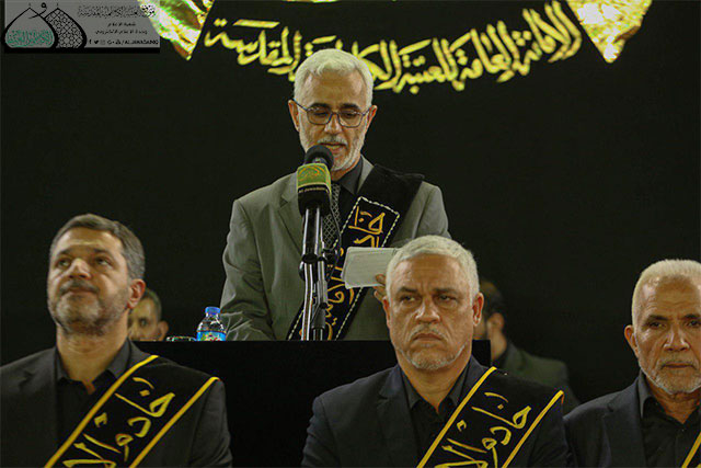 استهلت المراسم العزائية بتلاوة معطرة من الذكر الحكيم شنّف بها قارئ العتبة المقدسة الدكتور رافع العامري أسماع الحاضرين، تلتها كلمة الأمانة العامة للعتبة الكاظمية المقدسة والتي ألقاها أمينها العام قائلاً: ( علينا جميعاً إحياء كلّ ما يتعلّق بإمامنا الحسين "عليه السلام" ويخلّد ذكراه .. لأن جلّ ما نملك من مُثُل وقيم هو من بركات تضحيات سيد الشهداء .. فذكرى عاشوراء هي التي غرست في أعماقنا العبودية لله عزّ وجلّ، ومبادئ الإنسانية والإيثار وخدمة الآخرين، والعطف على الضعفاء، والدفاع عن المظلومين، ولأجل هذا كلّه يجب أن نحافظ على جذوة ملحمة عاشوراء متّقدة على الدوام، وأن نبذل مهجنا دونها، لنضمن الرفعة والشموخ لنا ولأجيالنا من بعدنا.